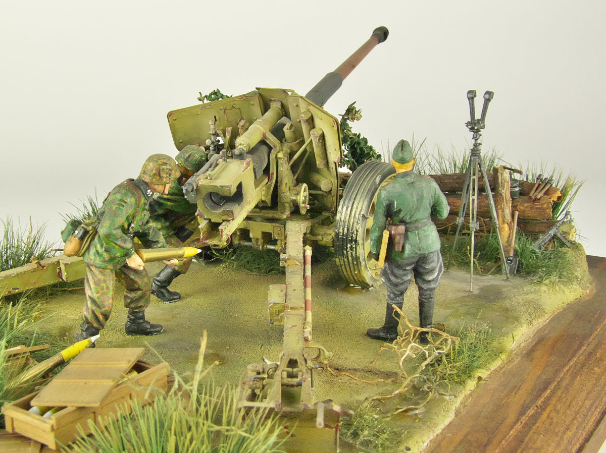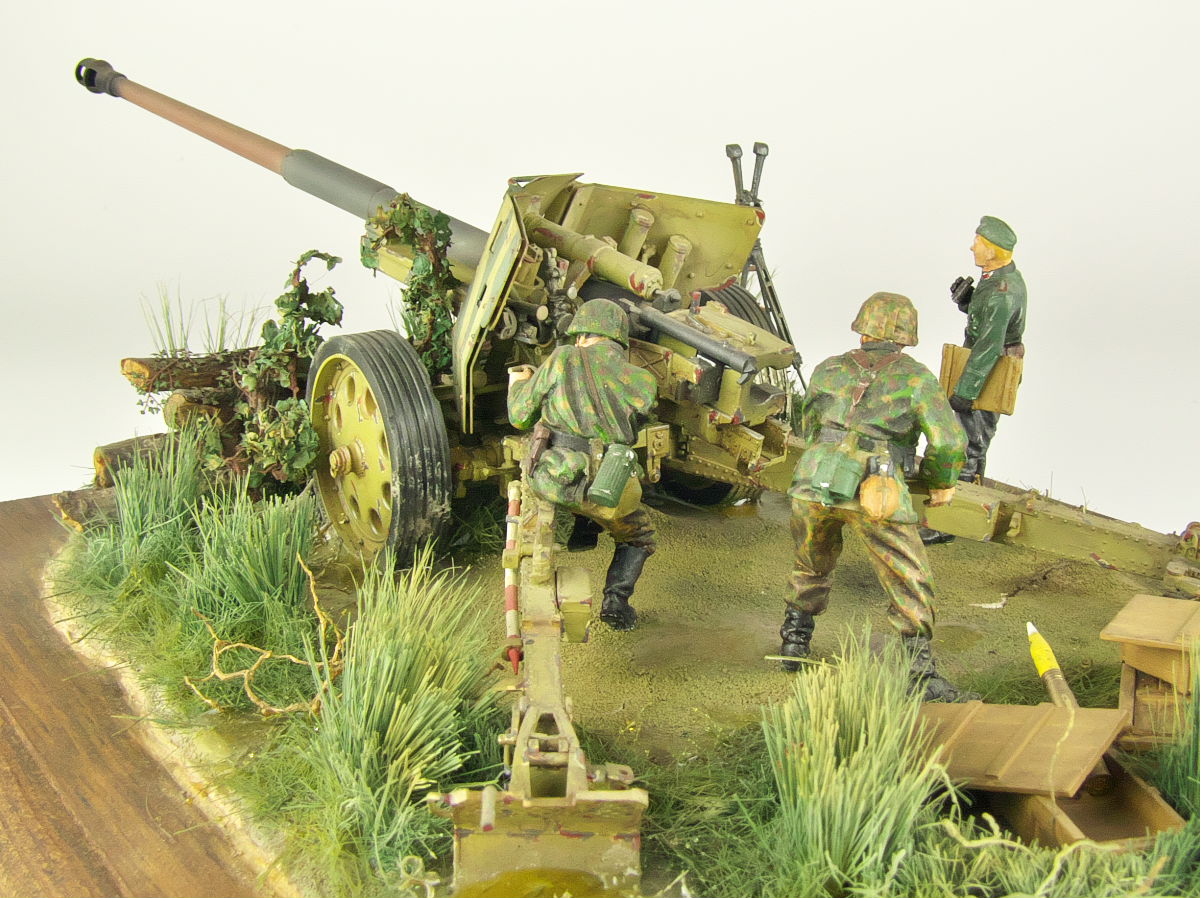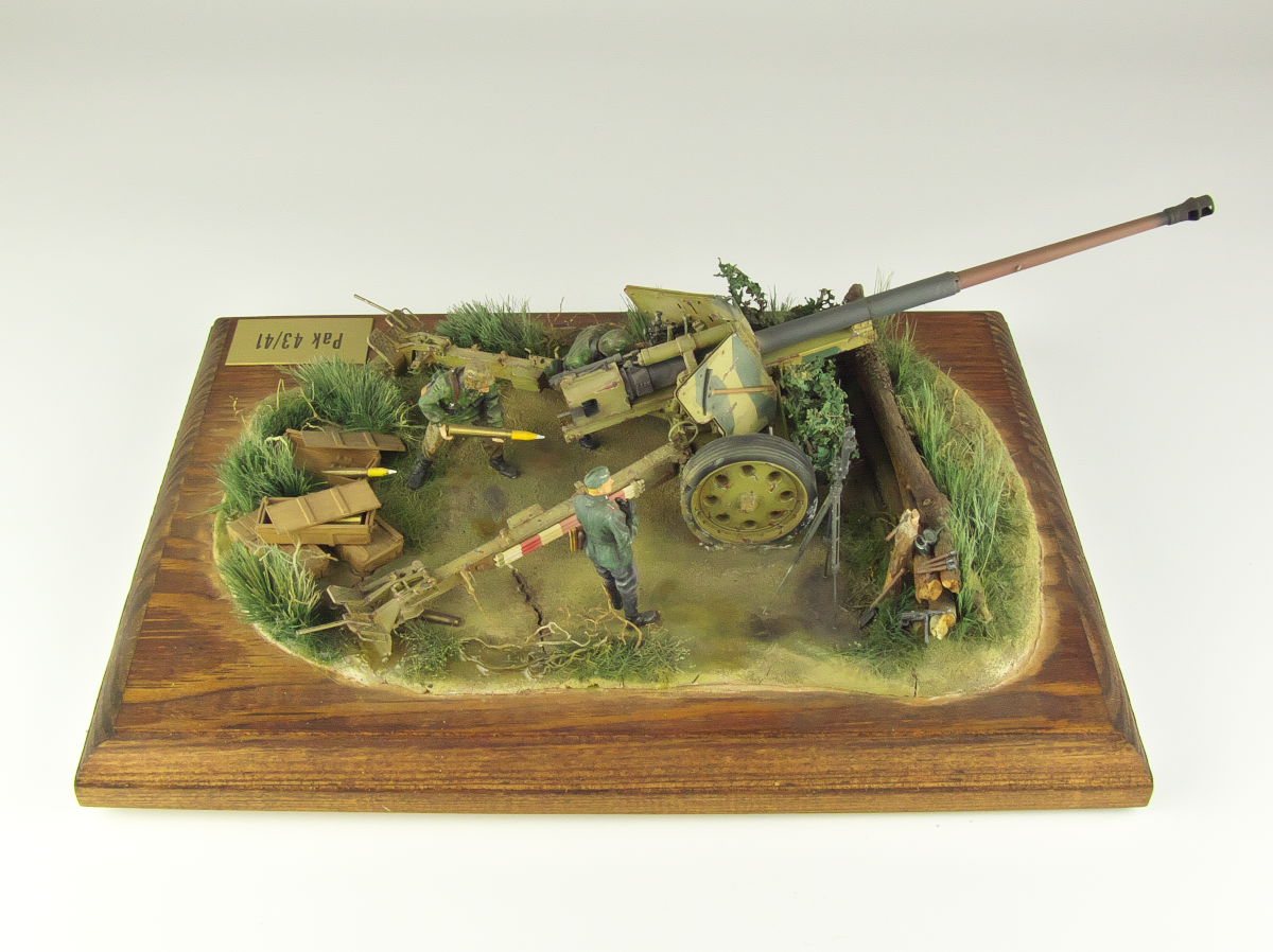 The diorama represents a plastic model of the German 8.8 cm PaK 43/41 anti-tank gun used during the Second World War. The model was built from the Dragon set. Parts from the Voyager kit were also used in the construction. The whole was made in 1:35 scale.